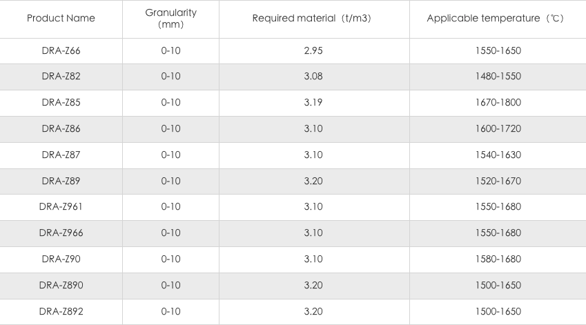 Bu seri ürünler esas olarak fused/sintered alümina ve magnezyadan oluşmaktadır. Zengin alümina-spinel tipine ait olup, her türlü karbon çeliği, manganez çeliği, alaşımlı demir ve çelik, paslanmaz ve yüksek hızlı takım çeliklerinin eritilmesinde kullanılabilir. Farklı kaliteler için uygun sıcaklık aralığı 1480℃-1820℃’dir.