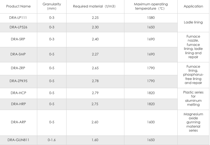 Bu farklı seri plastikler, herhangi bir eklemeye (su dahil) ihtiyaç duymadan doğrudan yama/sıkıştırmaya uygun olarak karakterize edilir. Isıtma, kurulumdan hemen sonra başlatılabilir ve kürlenmeye gerek yoktur. Aynı kalınlıktaki dökülebilir plastiklere kıyasla, ısıtma süresi daha kısadır. Hızlı Isınan plastikler gerektiğinde mevcuttur. Bunlar, metal temas astarı onarımı ve yapımında yaygın olarak uygulanır (ağızlık, kepçe, kazan, yıkama oluğu gibi…); Elektrik ark fırınlı ferronikel musluk deliği hızlı bloğu (ZRP). Fosforsuz Plastikler (HRP), son derece düşük fosforlu uygulamalarda kullanılabilir.